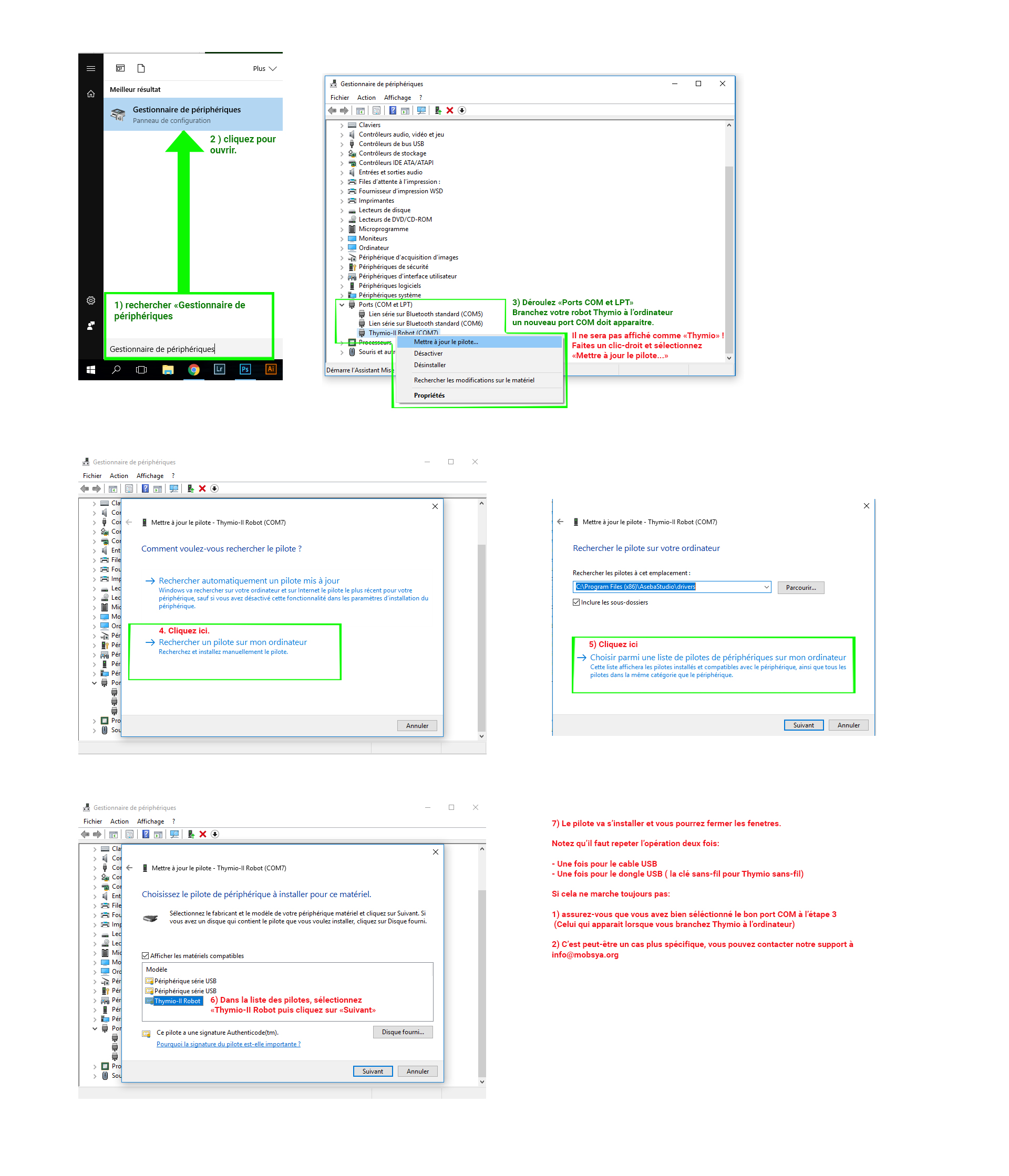 Normalement le pilote doit s’installer avec Aseba ou Thymio Suite. Si il n’est pas installé correctement, vous pourrez résoudre le problème en suivant cette procédure:
