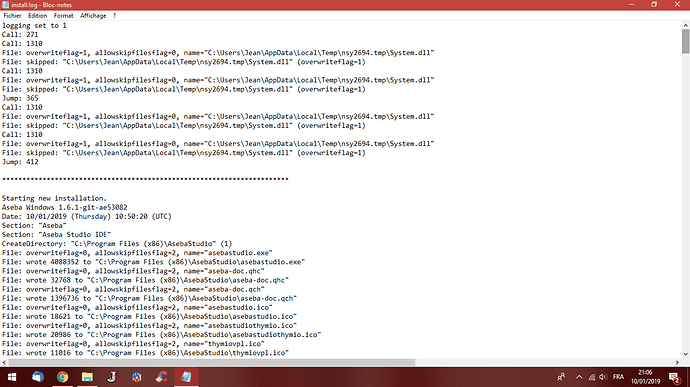 Je vous conseille d’abord de désinstaller Aseba, et reprendre la version 1.6.1. A l’installation, veillez a autoriser Aseba pour le pare-feu s’il y a des pop-ups de sécurité. Les messages en jaune qu’on voit sur votre capture d’écran me font penser à un conflit avec le pare-feu ou avec l’antivirus.