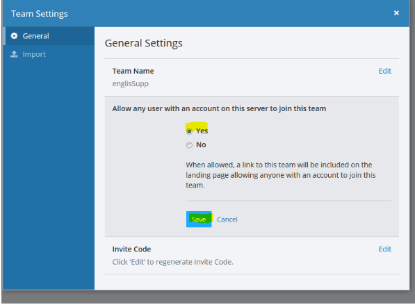 4. In team settings, make sure you elect the public mode by allowing any user with an account to join your team.